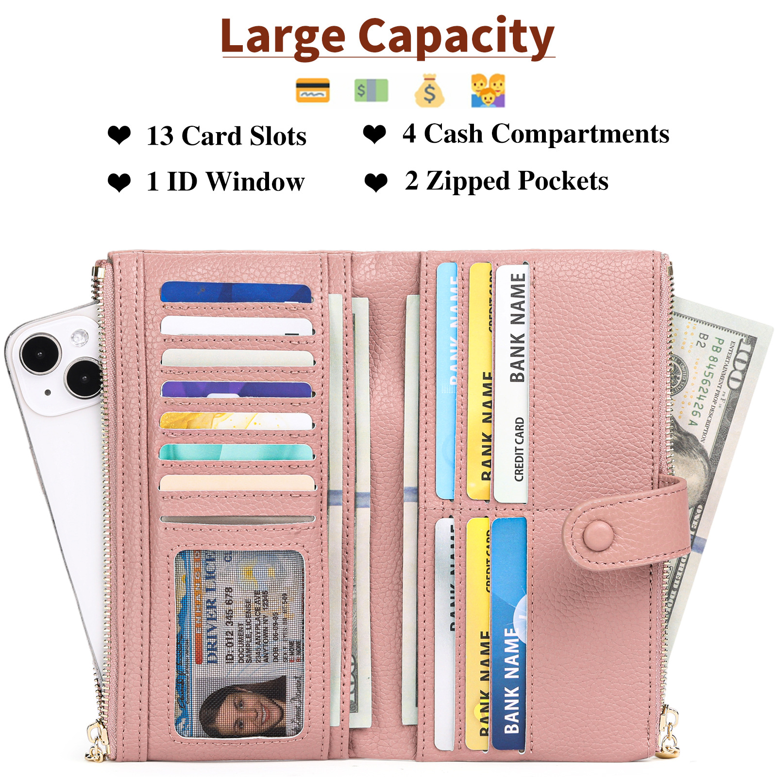 Disminuir cantidad para 💰Cartera de cuero genuino retro de moda para mujer más vendida en 2026, multicapa de gran capacidad