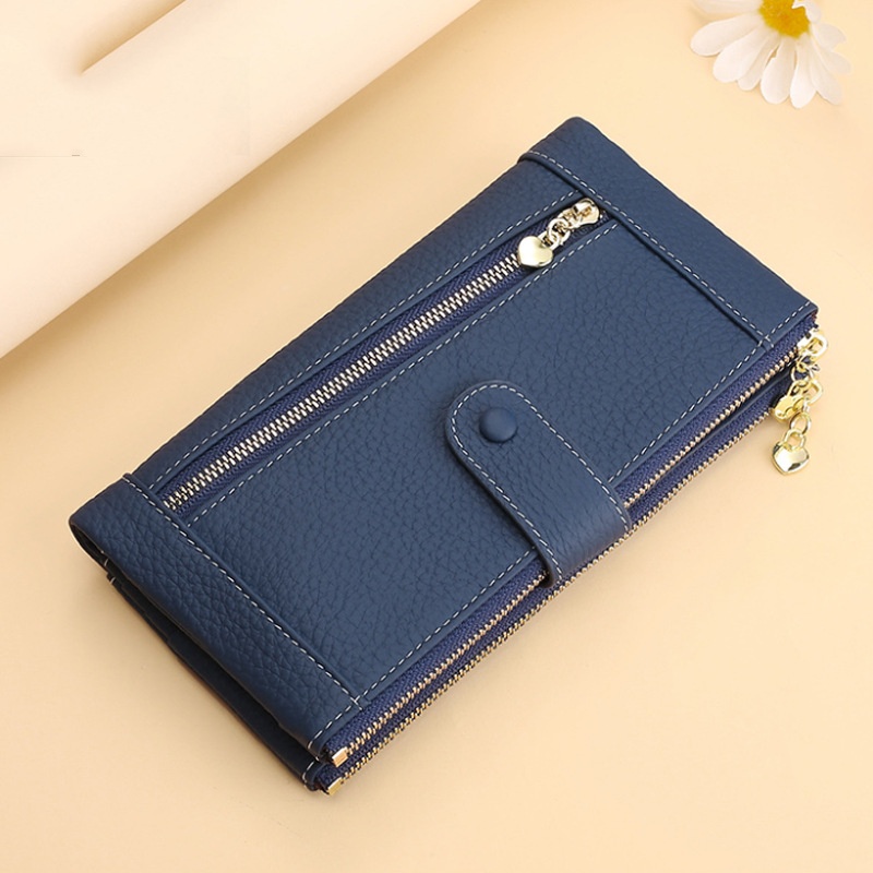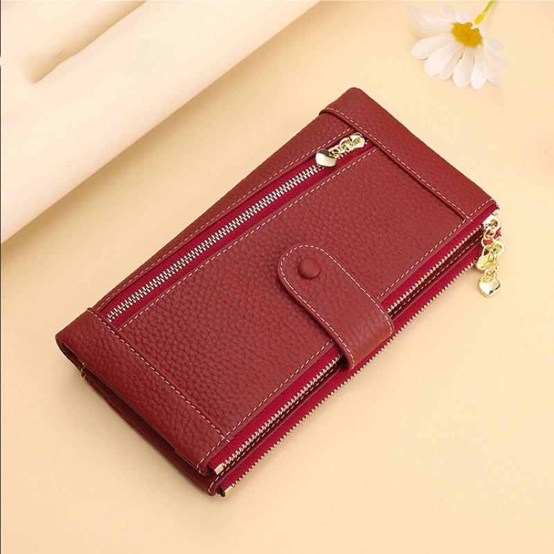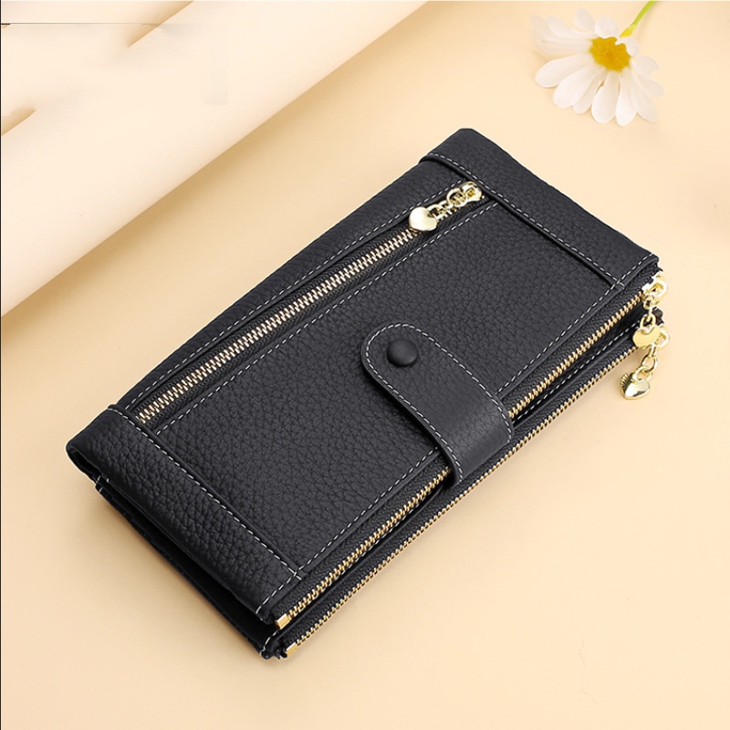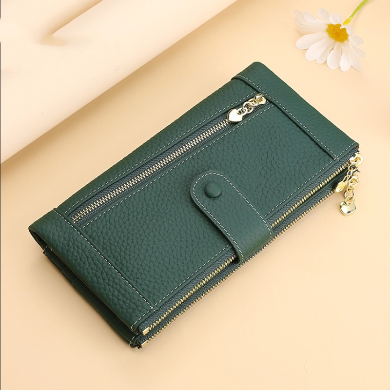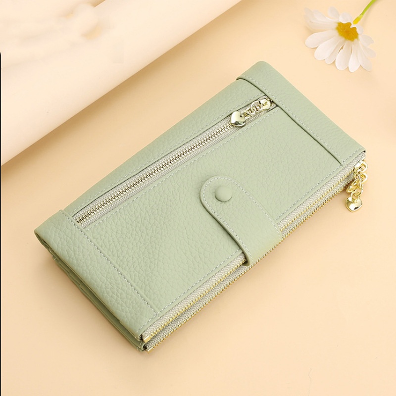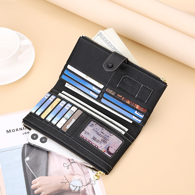 💰Cartera vintage de piel auténtica con doble cremallera y ranura para múltiples tarjetas para mujer