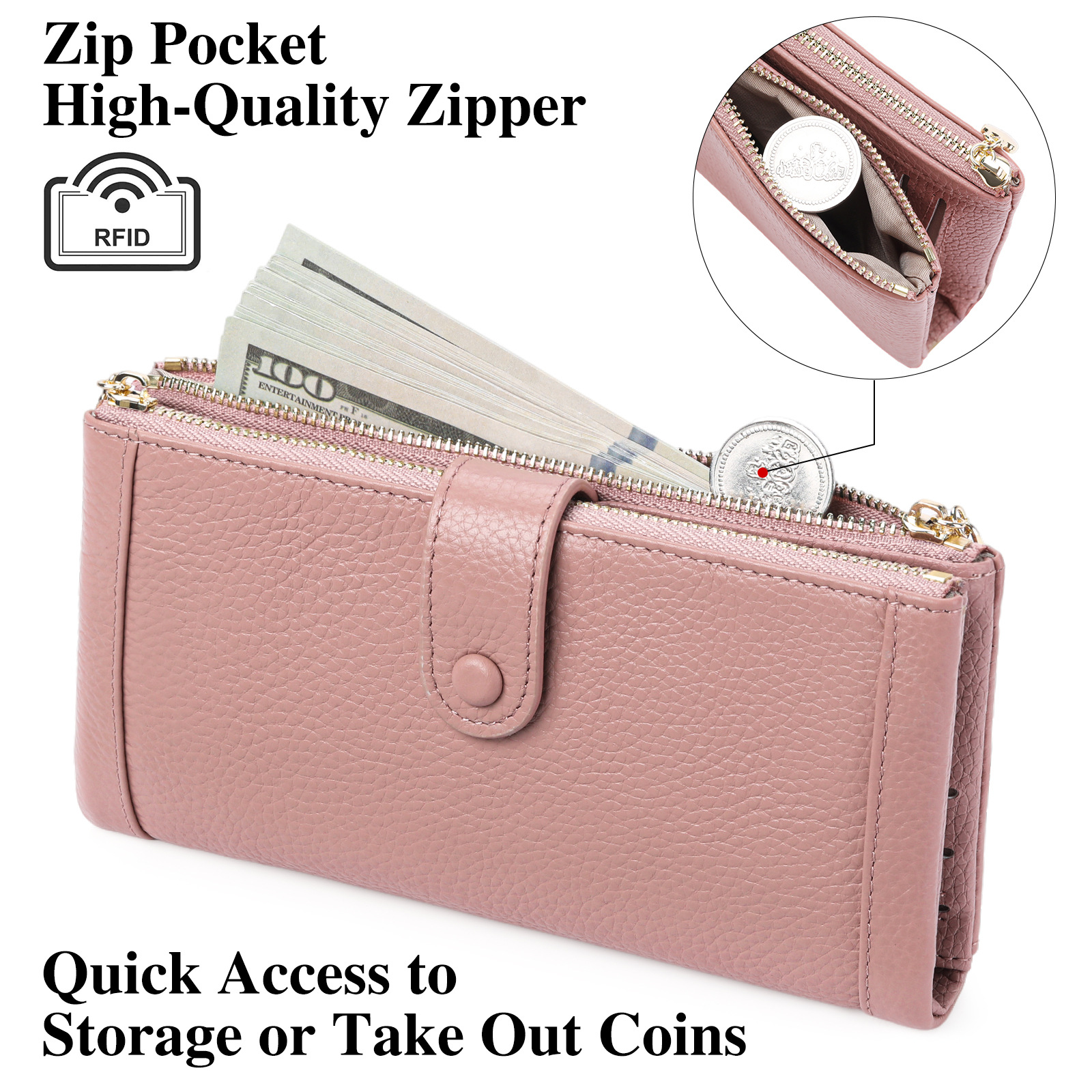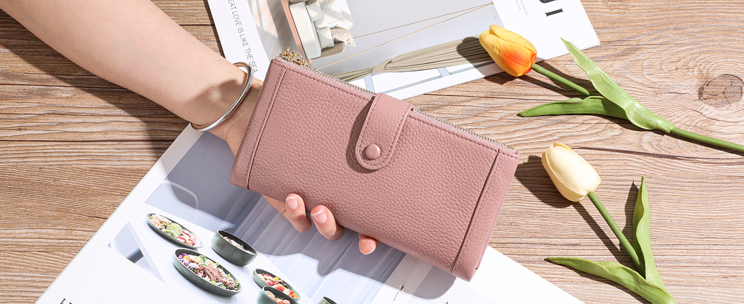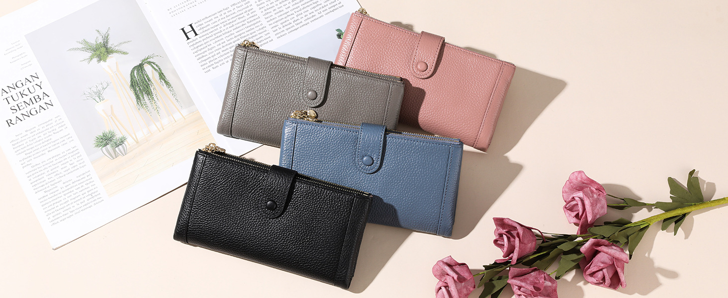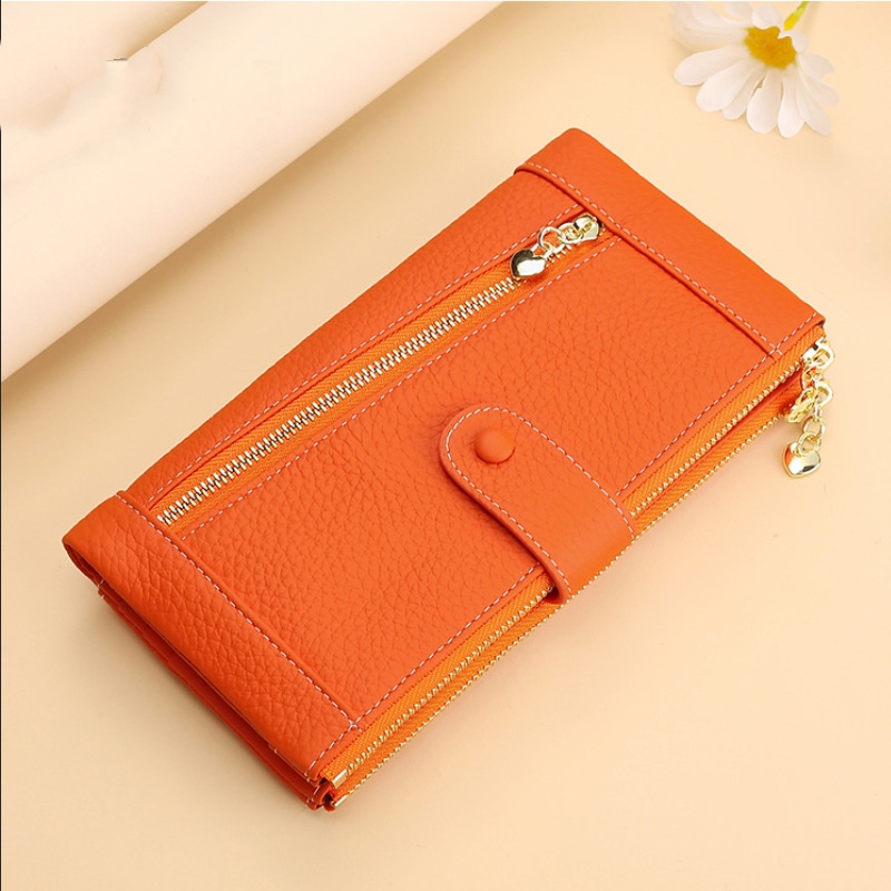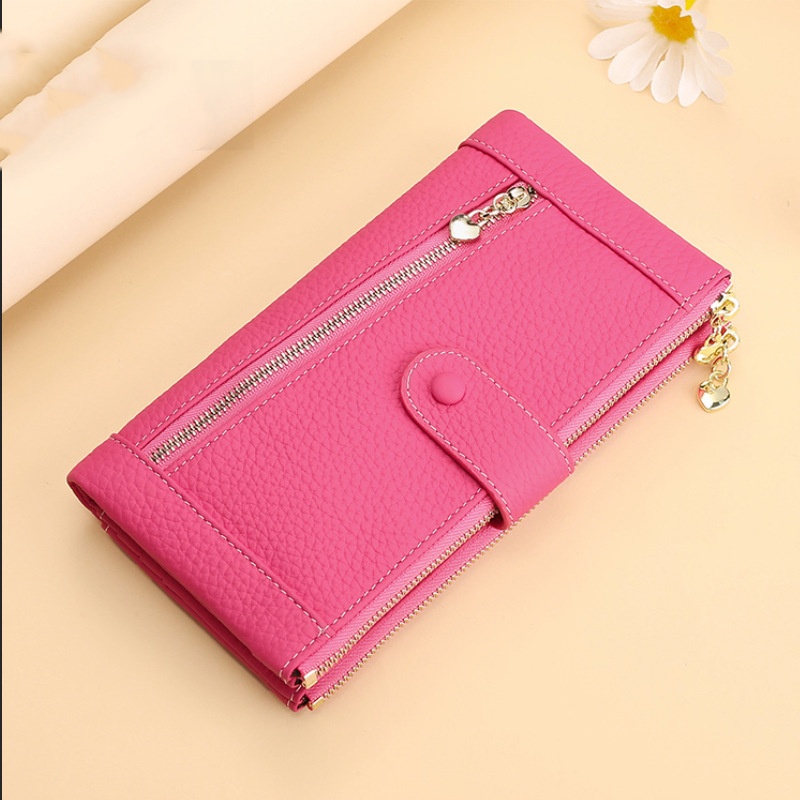 💰Cartera vintage de piel auténtica con doble cremallera y ranura para múltiples tarjetas para mujer