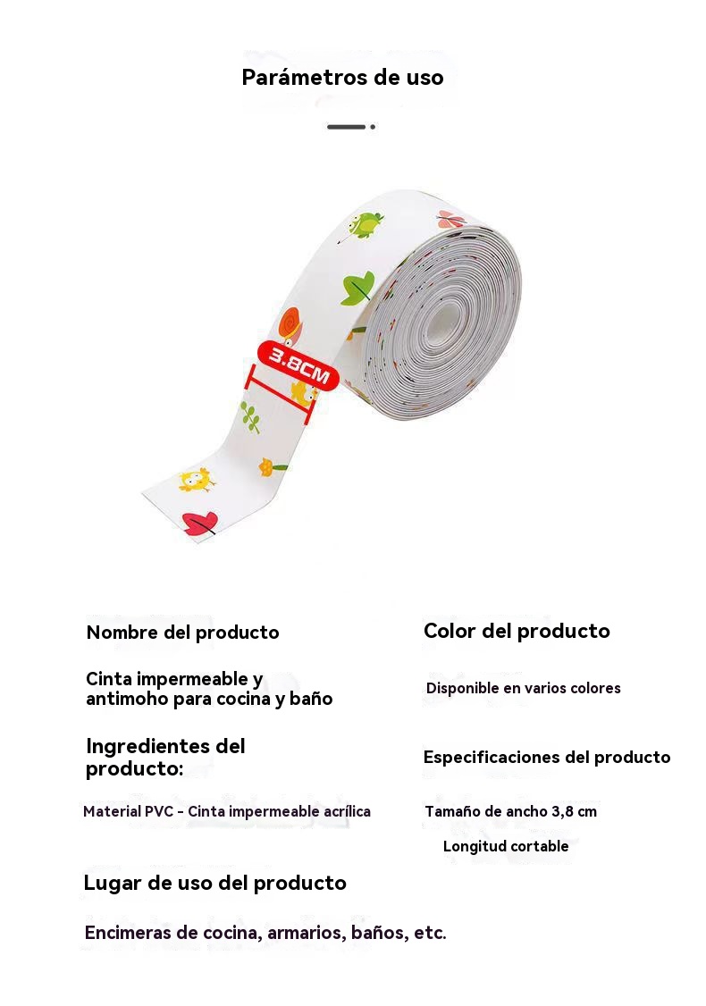 aumentar la cantidad para 【Paquete de 3】💧Cinta de sellado impermeable para cocina: detiene fugas rápidamente, previene el moho y resiste las manchas ✅[Color aleatorio]
